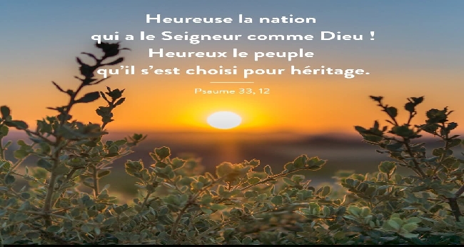 Verset de méditation: Psaume 33 : 12 <<Heureuse la nation dont l’Éternel est le Dieu ! Heureux le peuple qu’il choisit pour son héritage !>>